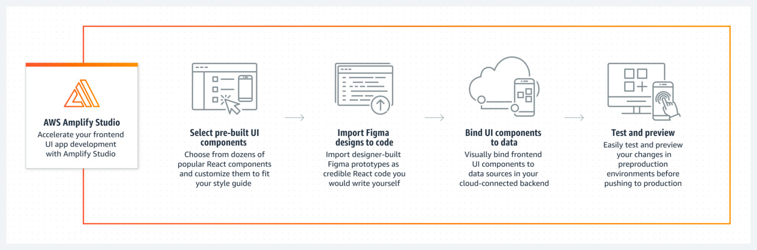 One of the most important tools in Amplify is Amplify Studio. This simplifies the configuration of backend and frontend UIs with a visual point-and-click experience, and also includes functionality for managing app content and users.