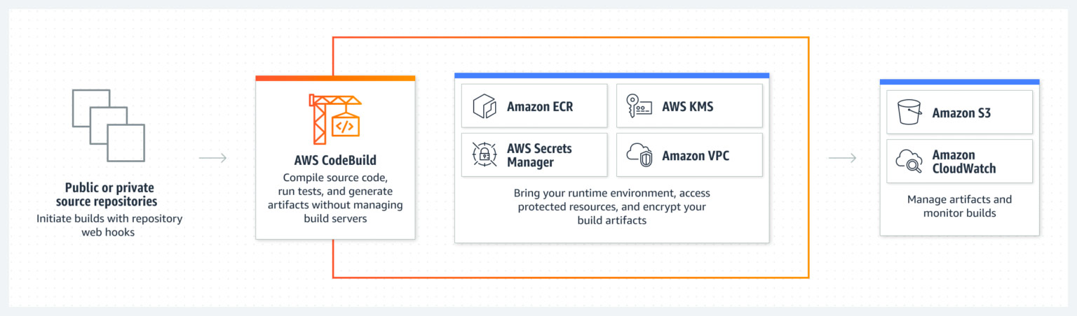 AWS CodeBuild is a fully managed service responsible for compiling your source code, run tests and getting everything ready for the deployment stage in a CI/CD pipeline, for example.