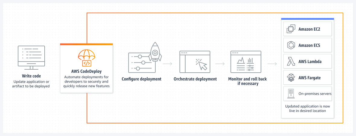 Finally, to automate deployments, AWS offers CodeDeploy.